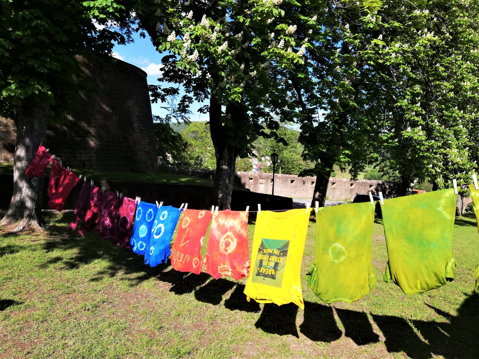 Weiße T-Shirts aus Baumwolle oder andere Stoffstücke müssen selbst mitgebracht werden.